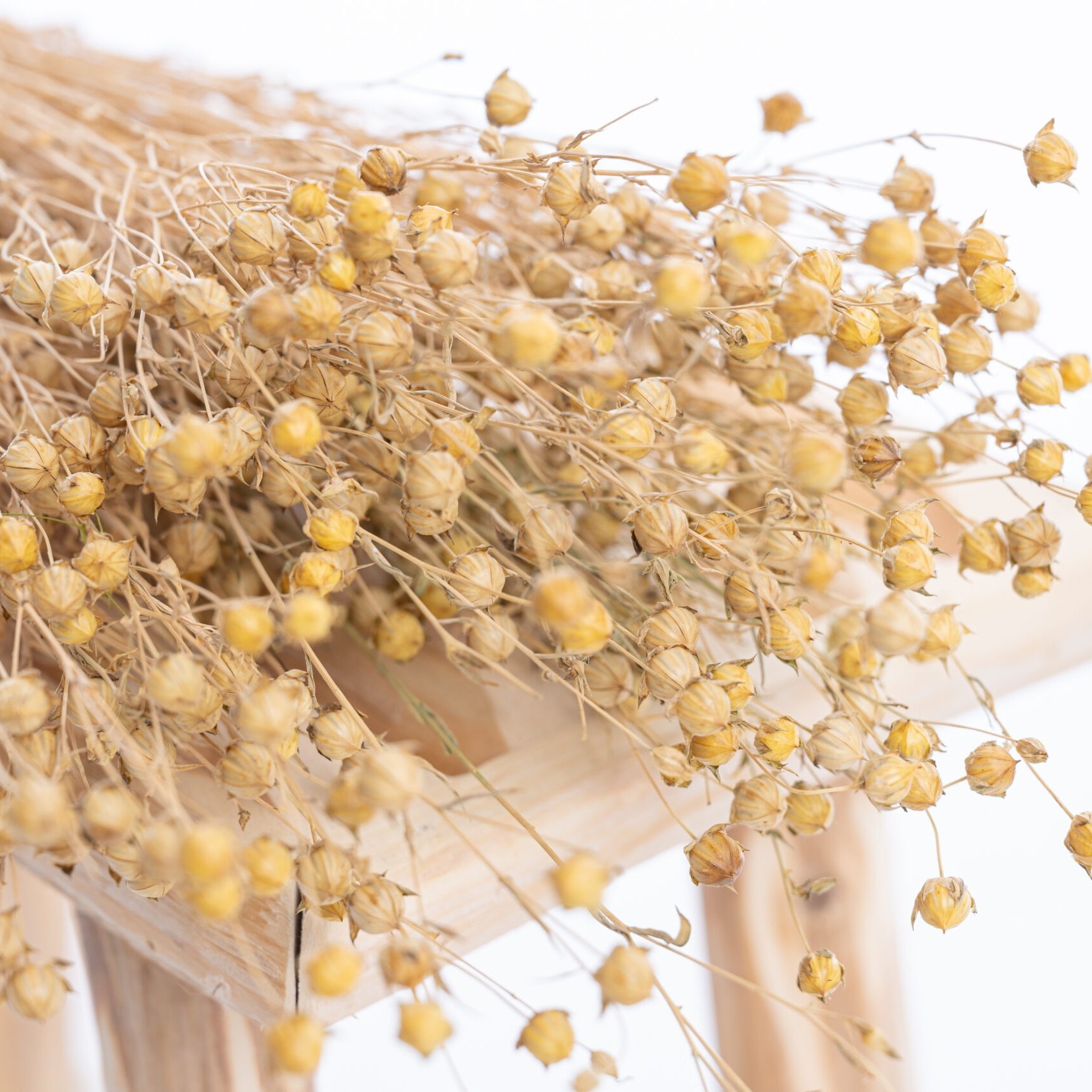 Le Lin séché apporte de la légèreté et donne un esprit champêtre raffiné à vos décors. Cette fleur des champs séchée est idéale pour accompagner la plupart des compositions florales, apportant délicatesse et volupté. Elle peut être utilisée en bouquets sur une arche ou encore seule pour habiller un marque place ou une serviette. Le Lin séché s’associe à de nombreuses graminées, fleurs, feuillages et plumes, apportant une touche aérienne.